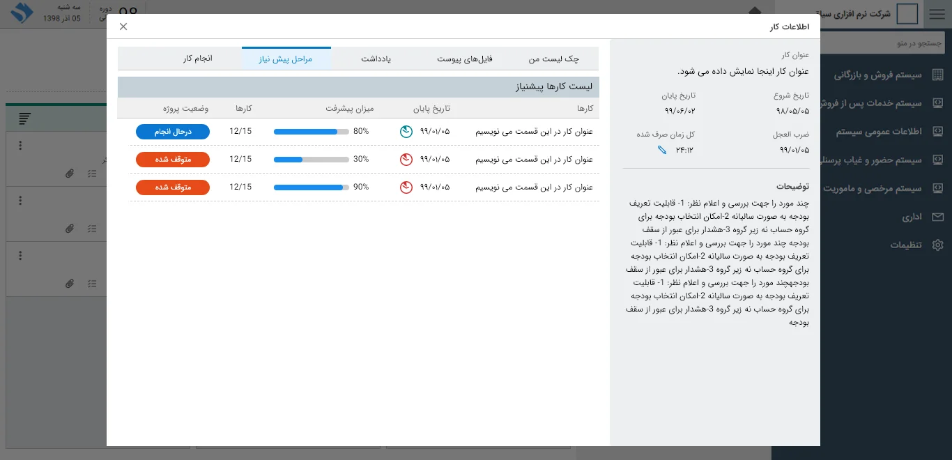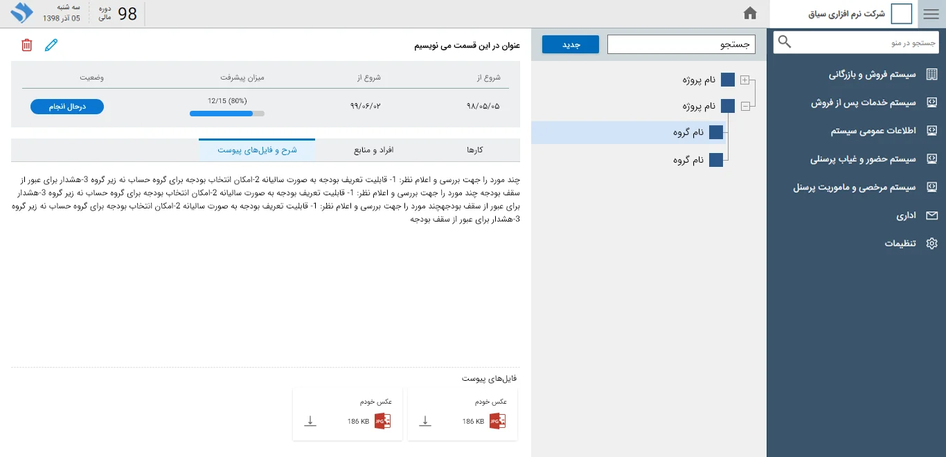 تنوع و پیچیدگی کارها در کنار حجم بالای کارهایی که نیاز به پیگیری، پایش و کنترل دارند؛ نیاز به وجود راهکاری برای مدیریت بهینه پروژهها و بهرهگیری از حداکثر منابع در دسترس برای کاهش هزینه و حرکت در مسیر زمانبندی شده، بیش از همیشه حس میگردد. نرم افزار مدیریت پروژه سیاق در جهت دستیابی به اهداف اصلی پروژه موجب مدیریت بهینه سه عامل: هزینه، زمان و منابع در اجرای پروژه میشود.
