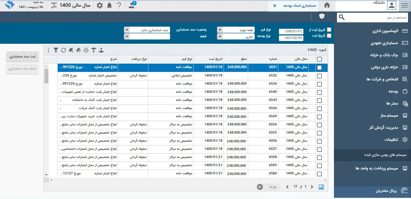 • ثبت اسناد با توجه به فصول هزینه و کنترل آن‌ها با برنامه‌ها