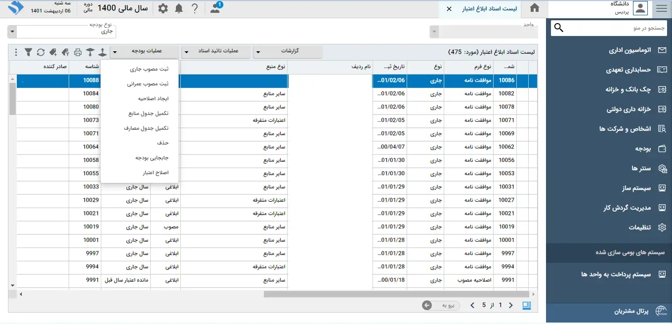 • قابلیت ثبت موافقتنامه، تخصیص و دریافت وجه در طرح‌های تملک دارایی‌های سرمایه‌ای و اعتبارات هزینه‌ای