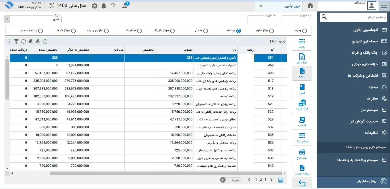 • کنترل بودجه اختصاص یافته، هماهنگ با سیستم مالی
