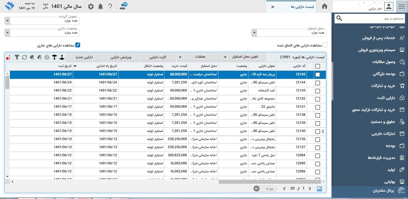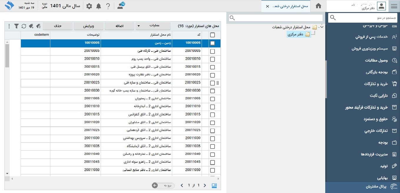 • تعریف محل‌های استقرار دارایی‌ها؛ قابلیت تفکیک محل‌های استقرار دارایی به صورت دلخواه