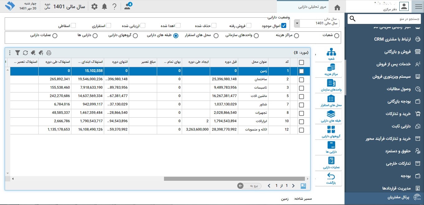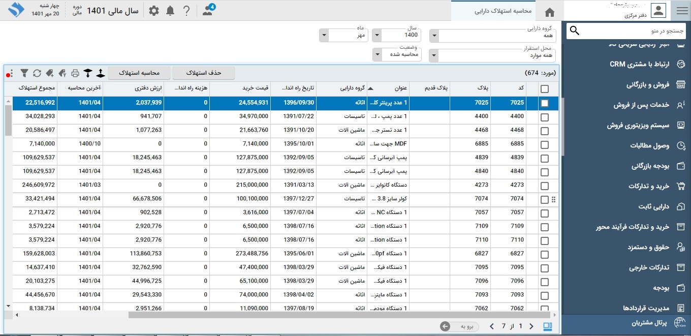 • امکان تعیین روش محاسبه استهلاک و نرخ استهلاک و عمرمفید دارایی